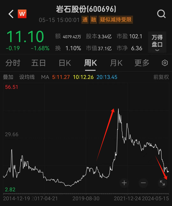 海银金钱爆雷之后,岩石股份的股价几近腰斩。而在2019年头涉白酒业务的时辰,岩石股份的股价一度从每股7元摆布高潮至51元/股近邻。